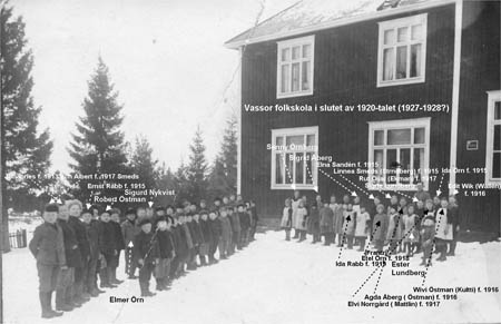 Vassor folkskola: Johannes Smeds, Albert Smeds, Ernst Rabb, Robert Östman, Sigurd Nykvist, Elmer Örn, Senny Örnberg, Sigrid Åberg, Elna Sandén, Linnea Smeds, Ida Örn, Rut Öijar, Sigrid Lundberg, Edit Wik, Etel Örn, Ida Rabb, Ester Lundberg, Wivi Östman, Agda Åberg, Elvi Norrgård och Edit Wik.