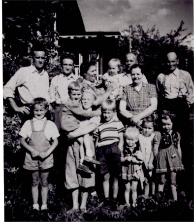 Fam. Johannes Öijar och Sanfrid Rabb i Sverige i Avesta-trakten omkring 1955. Johannes Öijar och Hilda Öijar längst till höger. Sanfrid och Elna Rabb är nr 2 och 3 från vänster. Hilda var född Åman och Elna var född Nygård.