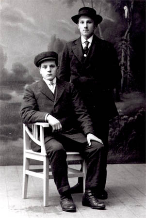 Vörå folkhögskolas årskurs 1915–16. Fr. v. Emil Wasberg f.1895 (Willis) och Alfred Rabb f. 1896 (Sandåsen)
