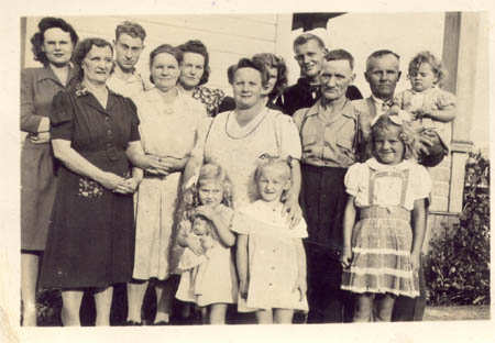 Elsa Wasberg och Anders Wasberg bland släkt och vänner i South Bend, nr 2 fr. v. Edla Bengs och nr 6 är Elsa Wasberg