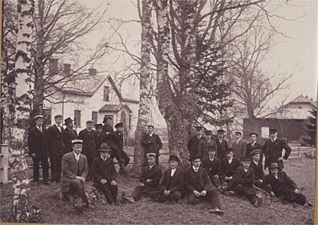 Elever vid Korsholms Lantmannaskola 1912-13. Raden längre bak, från vänster: Oskar Wasberg, f. 28/7 1892 i Vassor – död 17/6 1938 i Vallvik, Alfred Södergård, f. 18/10 1894 i Vassor – död 28/5 1944, lärare E. A. Wahlbeck, J. Bengs, E. Storm, J. Stoor, E. Svarvar, Johannes Rabb, f. 19/8 1894 i Vassor – död 29/3 1988 i Vassor, A. Stoor, H. Mannil, A. Kull, F. Rönnqvist, J. Finne, E. Juslin.