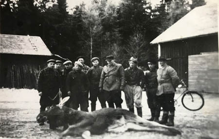 Jaktlaget 1954: Valfrid Södergård, Karl Kuni, Sanfrid Örn, Jakob Hellman, Albin Lövgård, Lennart Forsman, Ernst Frantz, Bertel Södergård, Åke Hellman och Valter Forsman.