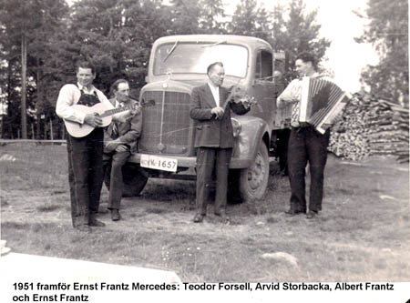 Musik framför Ernst Frantz Mercedes (mjölkbilen): Teodor Forsell, Arvid Storbacka, Albert Frantz, och Ernst Frantz