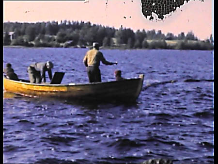Med Bertel Örnbergs motorbåt kördes en söndrig grimma till sågen. Ernst Frantz och Teodor Forsells såg på Bergnäset ”Bjäänesi”. Ramsåg Lillön i bakgrunden.