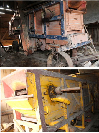 Två tröskverk, det övre tröskverket har använts i Vassor och det nedre i Kuni. De ersattes av skördetröskor på 1960-talet.