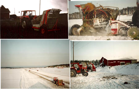 Rune Östman skördar sockerbetor på Åkersidan. År 1992 kom snön tidigt (10– 15 oktober) och därför körde snöslungan före upptagningsmaskinen. Fyra bilder. se VBH IV s. 413.