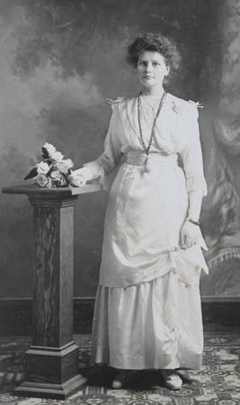 Regina Rabbs anteckning bakpå fotot ”min faster Hilda Björk född Rabb”. Hilda är född 1891 ”Åppibyn” och gift i USA med Oskar Björk från Österhankmo, far var Jakob Rabb. Hon återvände först till Österhankmo och sedan bodde hon på äldre dagar bredvid systern Hanna Svanberg i Mattas viken.