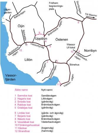 Tå-namnen i Vassor. Ett tå är en väg som förgrenar sig från en större väg och är en återvändsgränd. Se VBH III s. 63