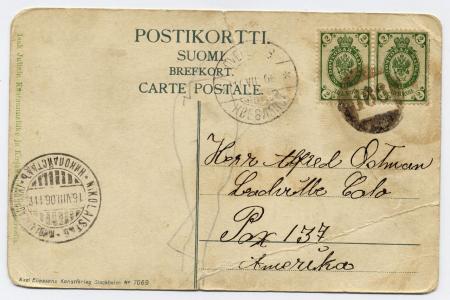 Lantbrevbäraren var utrustad med poststämplar med rysk och svensk text och sålde också frimärken. Lantbrevbärarens linje till Vassor var nr 166. Kortet är daterat 19.8.1906. Alfred Östman var född på Norrstu, bonde på Brännbacken 1917–1949 och var två gånger till Amerika.