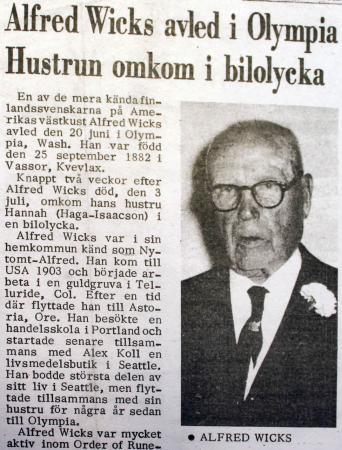 Alfred var född på Nytomt i Vassor 1882 och avled i Olympia USA den 3 juli 1969