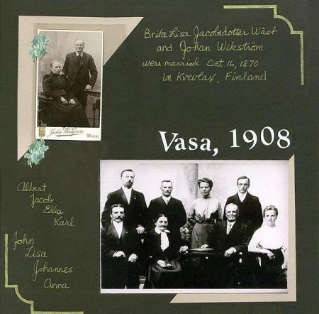 Wickström, familjen i Vasa 1908 och bild av kopparslagaren Johan Wikström med hustru Brita Lisa f. West i Oravais.
