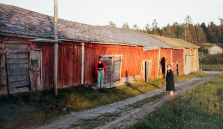 Majvor Wik (född i Örebro 1955) och mamma Gunnel (född Vestergård) vid uthusraden på Nyback, Gunnels hemgård, i början av 1970-talet.