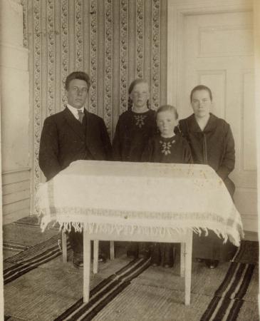 Alfred Willför f. 1891 och Edla Maria Willför f. Kuni 1898 med döttrarna Inga Willför f. 1918 och Ines Willför. Sockenskrivaren Johan Örn var Edla Marias morfar och lagliga förmyndare efter faderns död 1906.