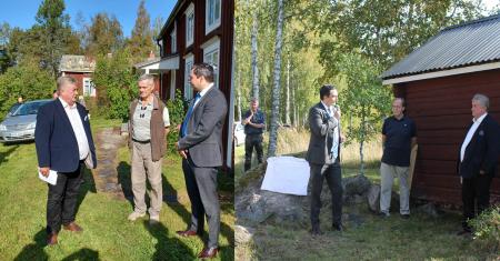 Avtäckning av minnesplatta vid Wickströms på Vesterbacken. På vänstra bilden Vassor bys samfällighets ordförande Stig Beijar, Joel Sellberg (John Wickströms dotterson) och riksdagsman Joakim Strand. På högra bilden Strand, Krisitian Sellberg (John Wickströms dotterson) och Beijar.