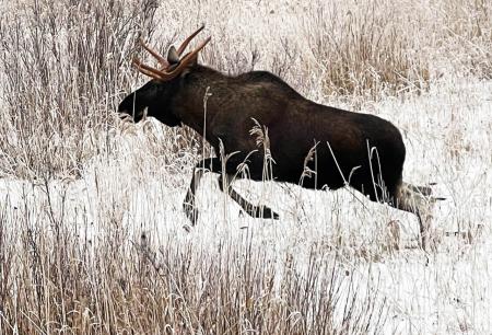 Hösten 2023 fotograferade Stig Beijar denna älgtjur nedanför jakttornet i Häraviken. Hösten kvot var två tjurar, två kor och två kalvar. Tillgången på älg var just då god på jaktlagets område och endast en kalv återstod. Därför fick tjuren på bilden löpa vidare.