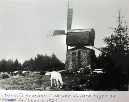 Stormis kvarn på Lillön. Isak Storm f. 1846 i Kärklax kom till Vassor 1905 och byggde kvarn Norribyn och sedan på Lillön. Kvarnen var i bruk ännu på 1920-talet. Väderkvarn. Läs mera...