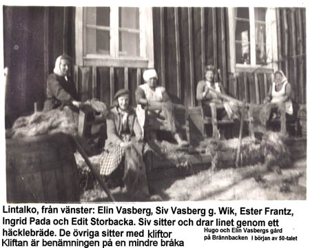 Linberedare vid Villis: Elin Vasberg, Siv Vasberg g. Wik, Ester Frantz, Ingrid Pada och Edit Storbacka.