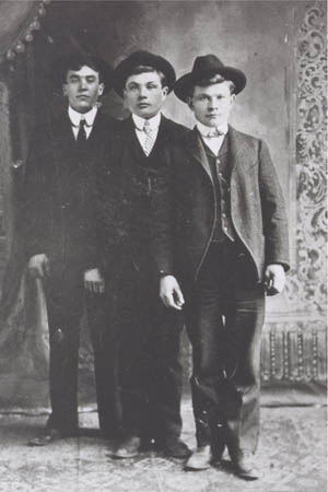 Tre bröder i Amerika fr. v. Johannes Dahlberg (halv fars bror till Johannes och Isak Erik), Johannes Åberg f. Udd och Isak Erik Nykvist f. Udd