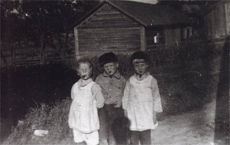 Tre barn med lakrits, Anne Nyman g. Stenros, Manne Wiik och Gunhild Nyman g. Vestergård Anne Stenros