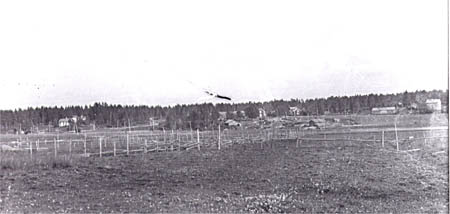 Laggen. Gårdarna från vänster: Alfred Lundberg, Johannes Wiik ”Battjis”, Fritjof Wik och Anna-Brita Rabb.