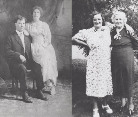 Anders Bengs från Helsingby och Edla Wasberg (till vänster på högra bilden, en syster till Verner Vestergård)