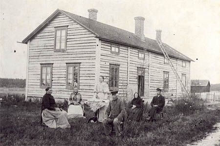 Familjen Sandvik på Nytomt slutet av 1890 framför nya huset senare Andelshandel. Fr. v. Anna Maria Häggström f. Holmlund, Pigan Beata Jonasdotter Örn, Ester Sandvik f. Häggström (Anna Marias dotter), Israel Sandvik g. med Brita, Brita Sandvik (Johansdotter) f. Wik el. Knuts och Isak Sandvik (Israel Sandviks son).