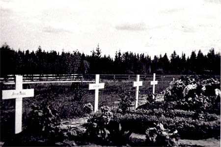 Krigets offer på Fridhem. Fr. v. Arvid Rabb och Georg Åberg. En del som stupade är begravda i Kvevlax. Alla har minnesplatta i Kvevlax.