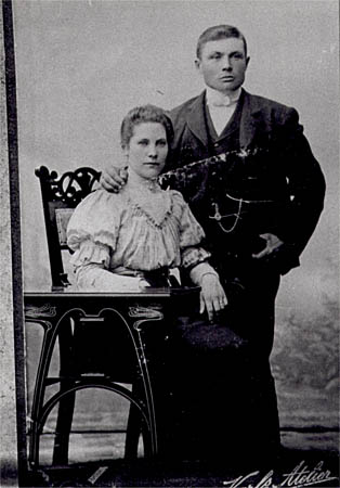 Brudparet Johannes Åberg f. Udd och Maria Åberg f. Södergård. De gifte sig 1907 innan Johannes andra resa till Amerika.