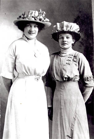 T.v. Ida Ek och Maria Udd f. 1885 bilden tagen i Amerika. (Ida är inte Anders Eks dotter, mamman hade Ida före giftet med Anders). Maria fick pass för resa till Amerika 17.01.1910. Begravd i Vassor 1938