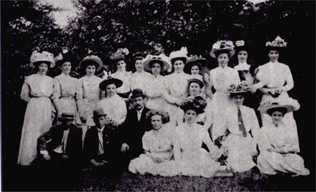 Stor emigrantsamling i USA Fr. v. 1. Maria Helsing g. Sandén, 2. Anna Wickström g. Carlsson, 3 och 4. Vendla Smeds systrar.