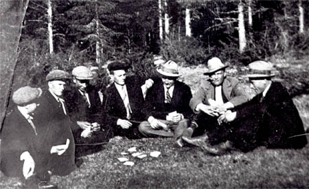 Fr. v. Rudolf Udd, Sigurd Nykvist, Georg Åberg, Sigfrid Nykvist, Arvid Åberg f. 1910, Nestor Rabb och Georg Nykvist. Norribyn