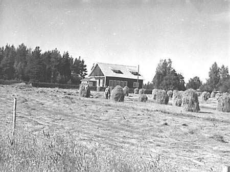 Teodor Forsell och Hildur Forsell störar hö i ”Bråojäälon”. Den tredje personen är Mickel Sandén