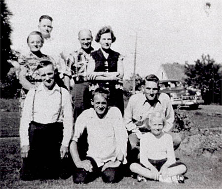 Fr. v. längst fram: 1. Anders Wasberg, 2. Rudolf Wasberg, 3. okänd, 4. okänd, fr. v. i bakre raden: 5. Elsa Hellman, 6. Arvid Sandén, 7. okänd, 8. okänd