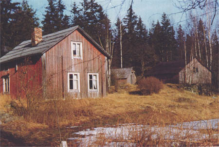 Husen vid Finnes gård i Kvevlax. Isak Erik Finne byggde gården för sig och sin hustru Maria f. Sillman. Tage Nylund skriver. "Mormors o morfars stuga"