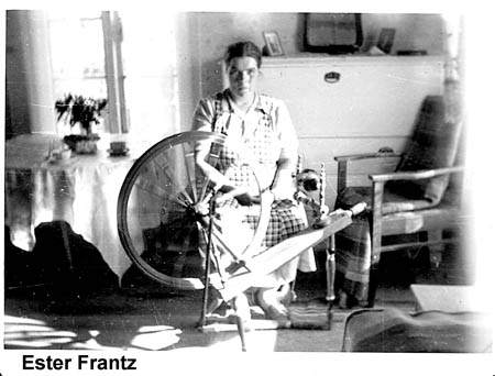 Ester Frantz vid spinnrocken. Hon var född vid Smedis, bodde på Bodstranden och senare sambo med Albin Strandberg i ”Trättjäälon”.