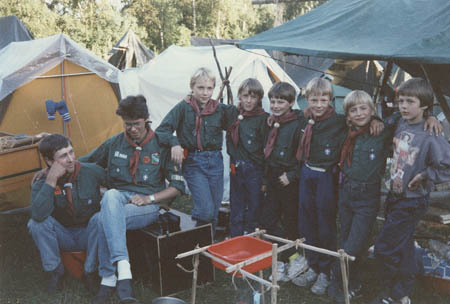 Vassor pingstkyrkas scoutkår 1990 i ett sommarläger. Från vänster Hans Örnberg, Jan-Andes Rådman, Roland Nässlin, Håkan Hultholm, Jonas Åberg, Ove Haldin, Martin Antell, och Magnus Nylund. VBH III s. 486