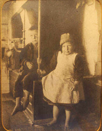 Harald Wasberg f. 1913 och systern Elna Wasberg f. 1915. Barnens far Johannes Wilhlemsson byggde ”Albiinas” i Kunisundet 1911 där barnen bör vara födda. Enligt muntlig uppgift gick barnen över vägen till grannen, där de blev fotograferade, så länge föräldrarna var i fähuset. Harald gifte sig med Sylvia Dahlberg och blev bonde på Hellbergs Norribyn, och Elna flyttade till Sverige och gifte sig med Karl Johansson.