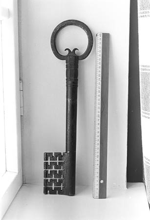 Slöjdlärare Alfred Willförs stora nyckel 43,5 cm lång. Alfred Willför (13.11.1891-14.5.1981) var bonde, smed och lärare i metallslöjd i Kvevlax hemslöjdsskola.