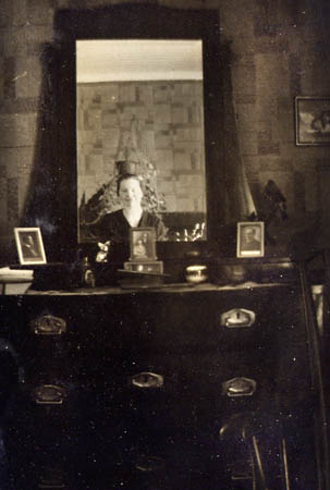 Ellen Berg, lärare i Vassor, fotograferad framför spegel. Vad finns på väggarna?