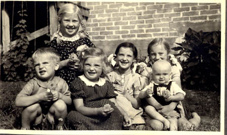 Bjarne Forsén, Britta Forsén, Anita Forsén, Annel Forsén och Tage Forsén f. 1944. Bakom dem deras kusin Berit Bäck.