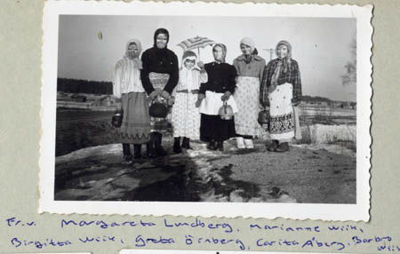 Påskhäxorna fr. v. Margareta Lundberg, Marianne Wiik, Birgitta Wiik, Greta Örnberg, Carita Åberg och Barbro Wiik.