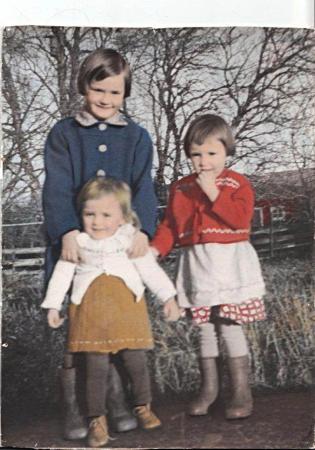 Syskonen Wiik: Marianne Wiik g. Backlund, Barbro Wiik och den minsta Birgitta Wiik. Platsen är sluttningen mot Sandåssundet vid deras hemgård på "Battjisback".