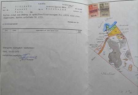 Lantmäterikarta över Vendla Smeds lägenhet Silände avfattade 1939