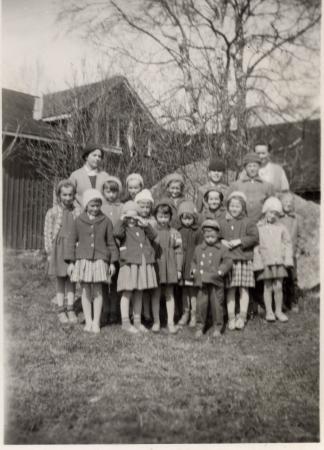 Söndagsskola hos Frida Grop. Ledare Frida Grop och Märta Södergård. 1960