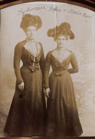 Syskonen Maria Kuni f. 1878 g. Forsman g. Nymark och Sofia g. Bäck f. 1882. Amerikafoto.