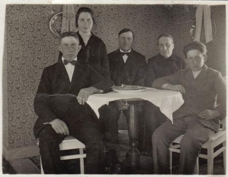 Från vänster: Karl Nymark, stående Ida Nymark g. Flinkfält, Alfred Nymark f. Kuni (1875–1938), Maria Nymark f. Kuni (Alfreds andra gifte) och till höger Artur Nymark.
