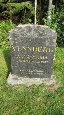 Vennberg Anna Maria 11/6 1853 – 27/10 1947 (från Lötet, dog på Mälsor, ”Vennbäs-måor”)