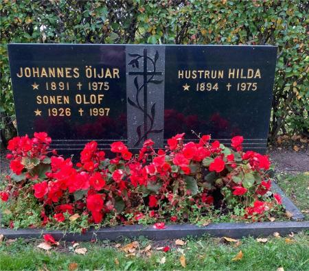Johannes Öijars och Hilda Öijars och sonen Olof Öijars grav. De är begravda i Folkärna kyrkogård i Krylbo Sverige.