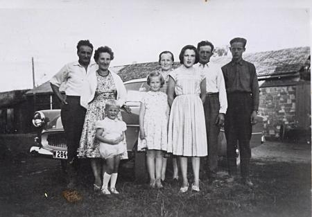 T. v. Elna Rabb och Sanfrid Rabb som bodde på Västerbacken (Norribyn) emigrerade på 50-talet till Sverige. Barnet okänt, Eivor Åberg g. Svarvar, Ingrid Åberg, Vivan Åberg g. Wik, Arvid Åberg och Viking Åberg. På besök hos Åbergs på 60-talet.