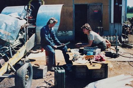 Kunimek 1989. Första pullingtraktorn. Motorn är en 27L Rover Meteor. Kaj Rabb t.v. och Tom Wiik t.h.